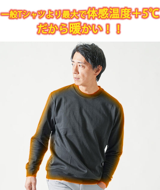 日本製厚手ボンバーヒート裏起毛素材モックネック長袖Tシャツ