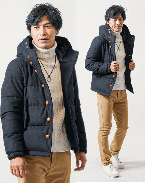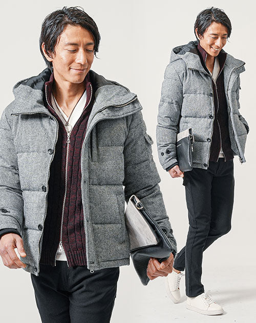 ウール混フード付きプレミアムダウンジャケット