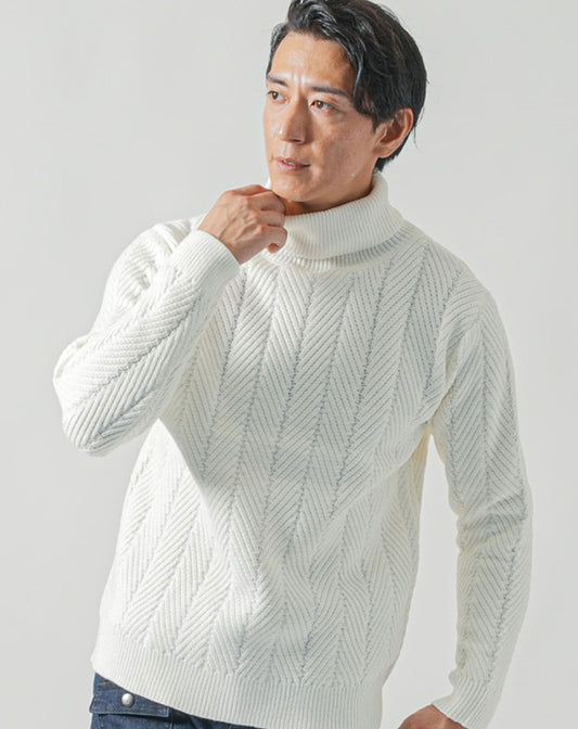 ヘリンボーン編みタートルネックニット